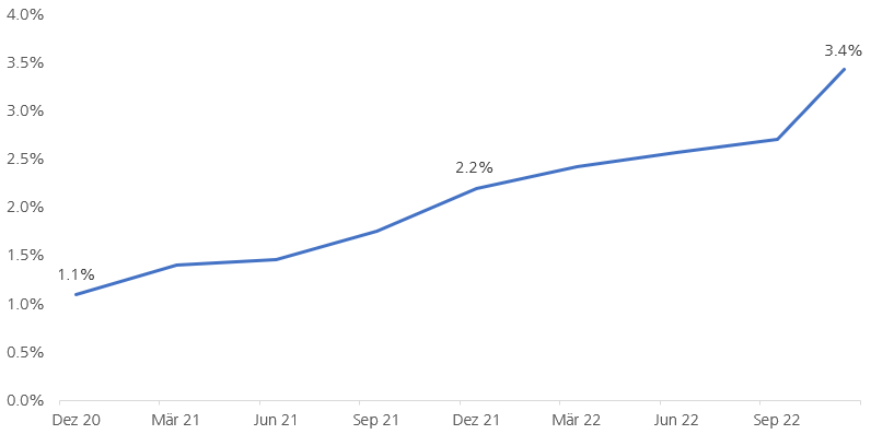 Weltweit hat die Emission nachhaltiger Anleihen bis Ende 2021 rasant zugenommen. Die nachfolgende Grafik zeigt, wie stark. 2022 blieb die Emissionstätigkeit aufgrund der schwierigen Verfassung der Bondmärkte verhalten. Ein wesentliches Motiv für diese grünen und sozialen Emissionen von Unternehmen und nationalen wie supranationalen Institutionen liefert die Herkulesausgabe des 21. Jahrhunderts, die Finanzierung der internationalen Wirtschaft auf dem Weg zur Bewältigung des Klimawandels. Wesentliche Impulse für die Finanzierung von Projekten in Form von Social Bonds kamen zudem durch die Corona-Pandemie. Veröffentlicht wird der Gesamtbestand weltweit ausstehender Anleihen mit dem Label Nachhaltigkeit im Rahmen der Markt-Statistik der Climate Bonds Initiative. Er belief sich per Ende Q3 2022 auf rund 2'000 Milliarden US-Dollar. Das klingt nach einer grossen Summe. Der nachhaltige Anteil am gesamten, weltweit ausstehenden Anleihevolumen beträgt jedoch erst rund 3 % – Tendenz allerdings vom niedrigen Niveau aus stark steigend. Grüne Anleihen gelten als Katalysatoren bei der Umstellung der Weltwirtschaft auf weniger Kohlenstoffverbrauch. Unternehmen und Staaten, die sich diesem Wandel verschliessen, werden mittelfristig zu ökonomischen Verlierern. Die Finanzierung nachhaltigen Wachstums verspricht dagegen in etwa marktgerechte Renditen. Im Durchschnitt zahlen grüne Anleihen eine leicht tiefere Rendite. Es wird dabei von einer Greenium gesprochen.