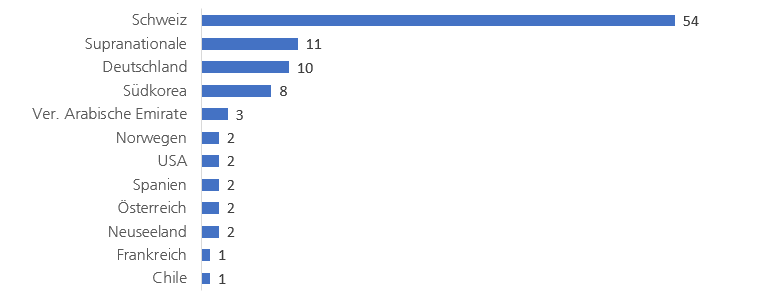 Schweiz: Anzahl grüner Anleihen nach Herkunft des Emittenten