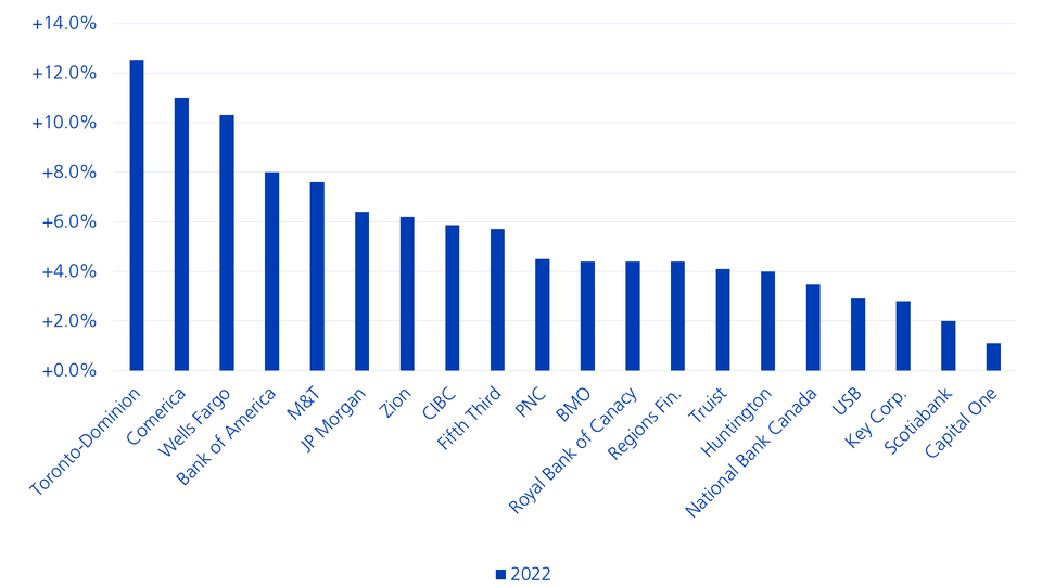 From an investment policy perspective, we currently prefer Canadian and US bank equities over European stocks due to the more favourable interest rate dynamics.